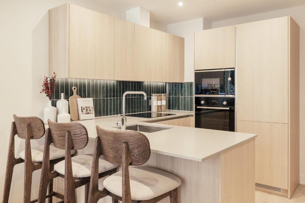 The one-bedroom apartments offer comfortable, practical living with generous storage - ideal for solo travellers or couples. The two-bedroom apartment includes floor-to-ceiling windows, an ensuite bathroom and a private balcony - perfect for those wanting a little extra space. Each premium serviced apartment at Bermondsey apartments are thoughtfully designed with comfort and style in mind. Enjoy a fully-equipped kitchen stocked with pantry essentials, fast free Wi-Fi and secure, self-check-in.