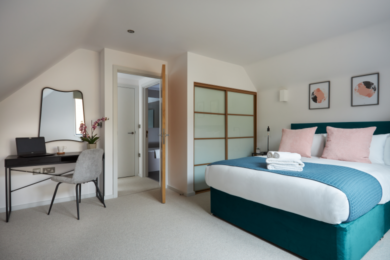 Southerton Mews has been expertly interior designed with precision and flair. The contemporary furniture is sleek and sophisticated and has also been chosen with comfort in mind. Open plan living areas with wooden flooring feature a large sofa with coffee table and smart TV. The custom-designed kitchen units come complete with high-spec, integrated appliances, including fridge/freezer, dishwasher, electric hob, oven and washer-dryer.