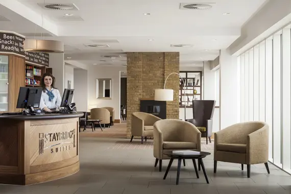 Each air- conditioned Suite has a fully equipped kitchen with dishwasher, microwave, hob, fridge- freezer and Nespresso machine as well as en-suite bathroom. We offer flat screen cable TV including connectivity via Apple TV to your own personal media, free wireless internet access. Staybridge Suites offers complimentary, daily breakfast, 24-hour reception, laundry room, fitness suite and on-site shop. We also host #TheSocial on Monday, Tuesday and Wednesday nights offering beer, wine, soft drinks and snacks to meet and great neighbours and hotel staff.