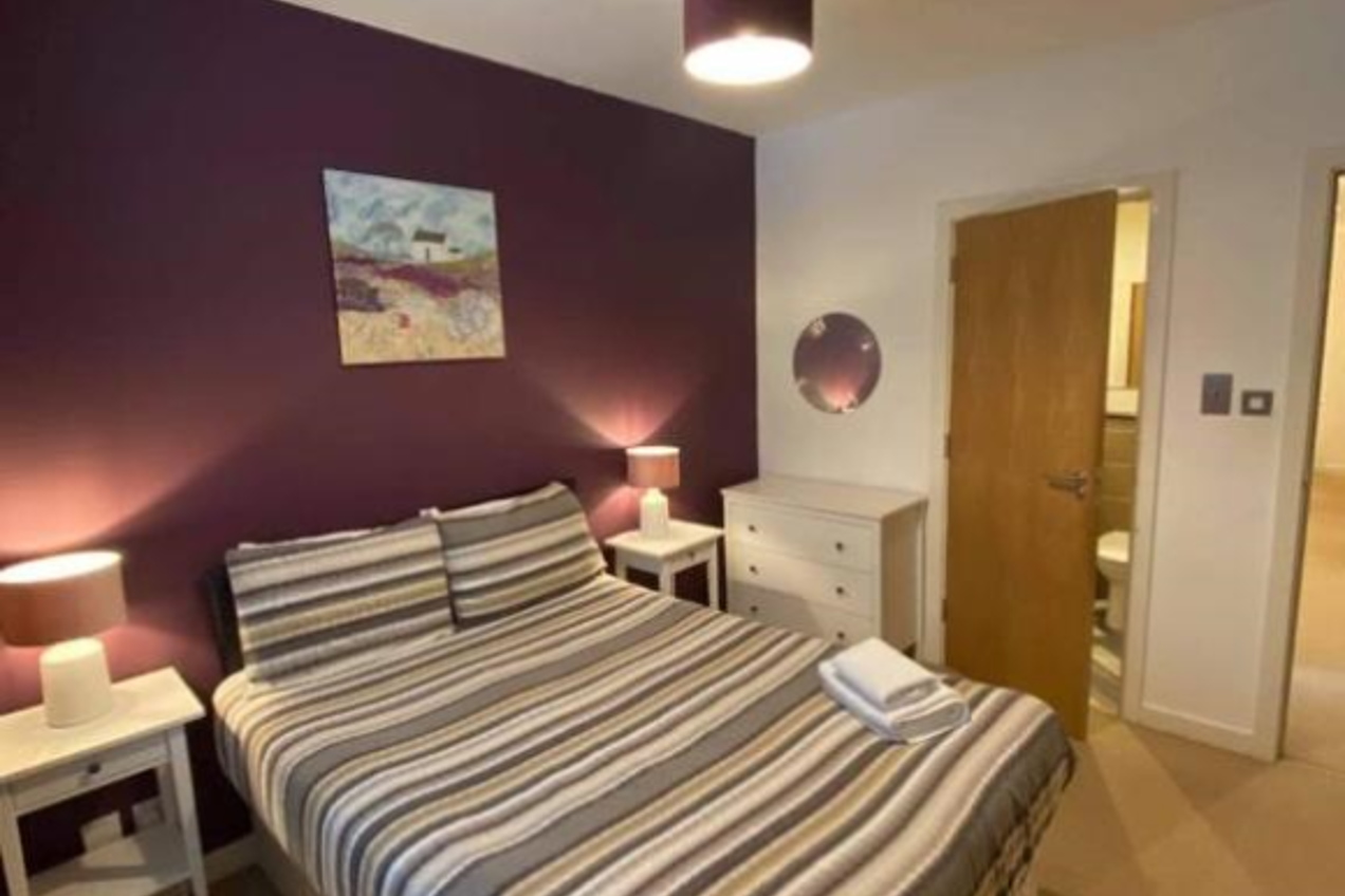 A two-bedroom apartment is light and airy with an open plan kitchen, dining and living room, en-suite double bedroom, second bedroom and a family-sized bathroom.