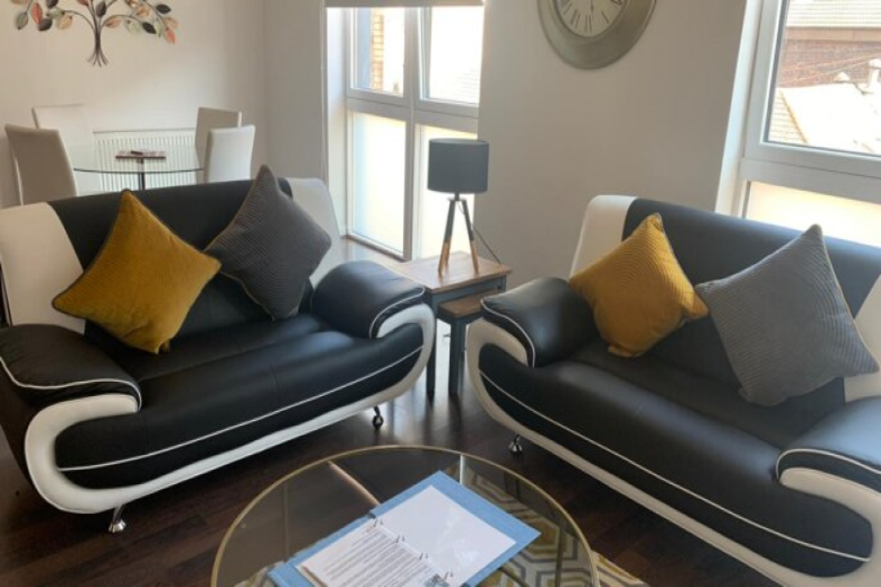 There is a choice of 1 and 2 bedroom apartments. A standard one-bedroom apartment is finished to a high standard with an open plan kitchen, living room and a bathroom.